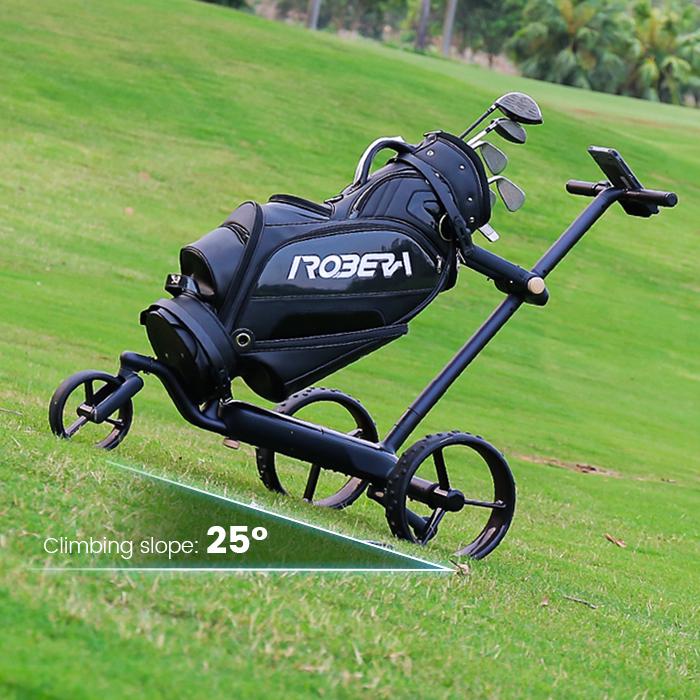 High Performance Climbing: Navigate slopes with confidence—this electric golf push cart offers uphill capability up to 25°, ensuring optimal performance on varying terrains..